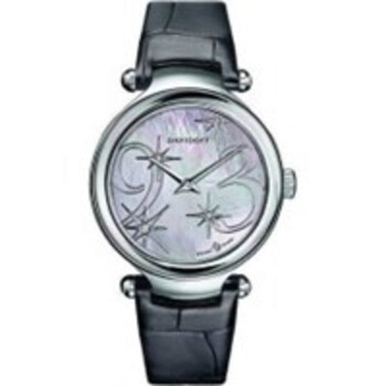 Stainless steel case with a crocodile leather strap. Fixed silver-tone stainless steel bezel. Mother of pearl dial with Arabic numeral hour markers. Dial Type: Analog. Quartz movement. Scratch resistant sapphire crystal. Screw down crown. Round case shape. Case size: 30 mm. Deployment clasp. Water resistant at 30 meters / 100 feet. Functions: hour, minute. Dress watch style. Watch label: Swiss Made. Pre-owned Davidoff Lady Quartz Ladies Watch 21158.