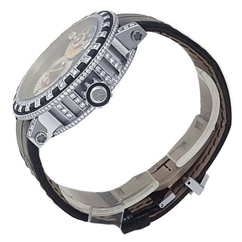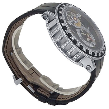 Silver-tone 18kt white gold case with a black leather strap. Fixed silver-tone bezel with diamond set. Black dial with silver-tone hands. Dial Type: Analog. Automatic movement. Scratch resistant sapphire crystal. Screw down crown. Transparent case back. Round case shape, case size: 43 mm. Fold over clasp. Water resistant at 30 meters / 100 feet. Functions: date, hour, minute, second, tourbillon. Academia Series. Luxury watch style. Watch label: Swiss Made. Pre-owned DeWitt Academia Diamond Black Dial Unisex Watch AC.2041.40A/102.M121/102.