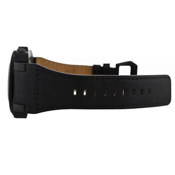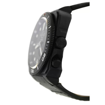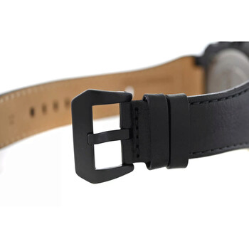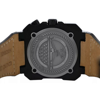 Black stainless steel case with a black leather strap. Fixed black stainless steel bezel. Black dial with silver-tone hands and Arabic numeral & index hour markers. Minute markers around the outer rim. Dial Type: Analog. Luminescent hands and markers. One subdial displaying: small seconds. Automatic movement. Scratch resistant sapphire crystal. Screw down crown. Solid case back. Square case shape, case size: 46 mm. Buckle clasp. Water resistant at 100 meters / 330 feet. Functions: hour, minute, second, dual time inner bezel. Xo Submarine Series. Luxury watch style. Watch label: Swiss Made. Pre-owned Gevril XO Submarine Automatic Black Dial Men's Watch 4534.