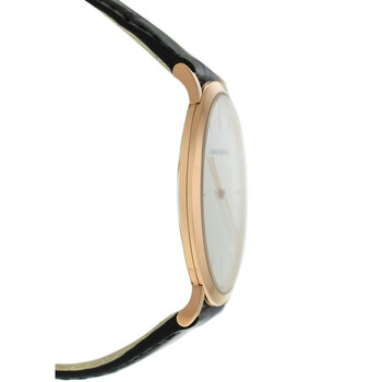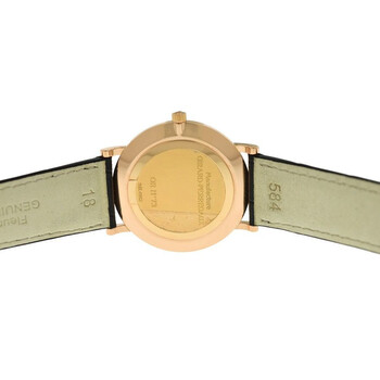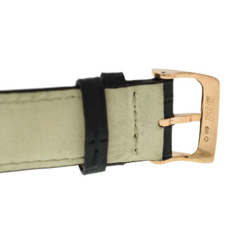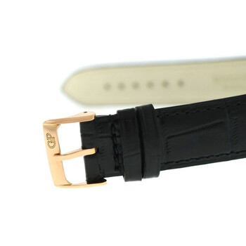 Rose gold-tone 18kt rose gold case with a black leather strap. Fixed rose gold-tone 18kt rose gold bezel. White dial with rose gold-tone hands and index hour markers. Dial Type: Analog. Hand wind movement. Solid case back. Round case shape, case size: 34 mm. Buckle clasp. Functions: hour, minute. Perregaux Classique Elegance Series. Casual watch style. Watch label: Swiss Made. Pre-owned Girard Perregaux Perregaux Classique Elegance Hand Wind White Dial Men's Watch 47620-0-52-111.