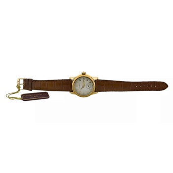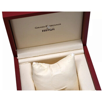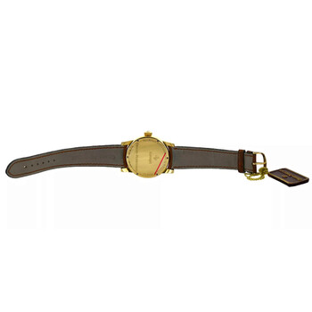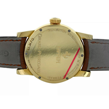 Yellow gold-tone 18kt yellow gold case with a brown leather strap. Fixed yellow gold-tone 18kt yellow gold bezel. White dial with yellow gold-tone hands and Arabic numeral hour markers. Minute markers around the outer rim. Dial Type: Analog. Automatic movement. Solid case back. Round case shape, case size: 38 mm. Buckle clasp. Functions: hour, minute, second. Perregaux Ferrari Series. Dress watch style. Watch label: Swiss Made. Pre-owned Girard Perregaux Perregaux Ferrari White Dial Men's Watch 80300051815.