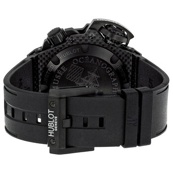 Pre-owned Black carbon fiber titanium case with a black rubber strap. Fixed black carbon fiber bezel. Matt black dial with silver-tone hands and index hour markers. Minute markers around the outer rim. Dial Type: Analog. Luminescent hands and markers. Date display at the 3 o'clock position. Automatic movement. Scratch resistant sapphire crystal. Screw down crown. Solid case back. Case diameter: 48 mm. Round case shape. Deployment clasp. Water resistant at 4000 meters / 13,000 feet. Functions: date, hour, minute, second. Additional Info: limited edition 500 pieces. Luxury watch style. Watch label: Swiss Made. Hublot Big Bang King Power Oceanographic Men's Watch 731QX1140RX.