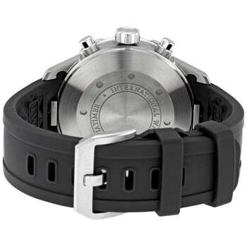 Silver-tone stainless steel case with a black rubber strap. Uni-directional rotating black and yellow ion-plat bezel. Black dial with luminous silver-tone and yellow hands and index hour markers. Minute markers around the outer rim. Dial Type: Analog. Luminescent hands and markers. Day of the week and date display at the 3 o'clock position. Chronograph - three sub-dials displaying: 60 second, 30 minute and 12 hour. IWC Calibre 79320 Automatic movement, based upon ETA 7750, containing 31 Jewels, bitting at 28800 vph, and has a power reserve of approximately 44 hours. Scratch resistant mineral crystal. Stainless steel crown. Solid case back. Round case shape, case size: 44 mm, case thickness: 15 mm. Tang clasp. Water resistant at 120 meters / 400 feet. Functions: chronograph, date, day, hour, minute, second. Aquatimer Chronograph Series. Sport watch style. Watch label: Swiss Made. Pre-owned IWC Aquatimer Chronograph Automatic Black Dial Men's Watch IW376702.