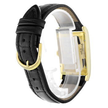 Yellow gold-tone 18kt yellow gold case with a black leather strap. Fixed yellow gold-tone 18kt yellow gold bezel. White dial with yellow gold-tone hands and index hour markers. Minute markers around the outer rim. Dial Type: Analog. Date display at the 6 o'clock position. Automatic movement. Scratch resistant sapphire crystal. Solid case back. Rectangle case shape, case size: 27 mm. Buckle clasp. Functions: month, date, day, hour, minute, second. Novecento Series. Luxury watch style. Watch label: Swiss Made. Pre-owned IWC Novecento Automatic White Dial Men's Watch IWC3546.