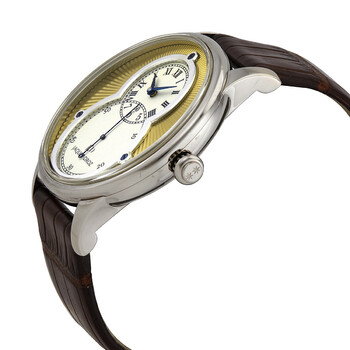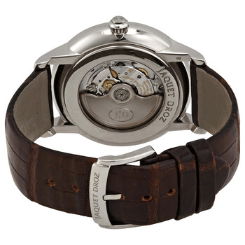 18kt white gold case with a brown crocodile leather strap. Fixed silver-tone 18kt white gold bezel. Gold dial with blue hands and Arabic numeral & Roman numeral hour markers. Dial Type: Analog. Automatic movement. Scratch resistant sapphire crystal. Pull / push crown. Transparent case back. Round case shape, case size: 43 mm. Buckle clasp. Water resistant at 30 meters / 100 feet. Functions: hour, minute, second. Additional Info: limited edition to 88 pieces. Grande Seconde Series. Dress watch style. Watch label: Swiss Made. Pre-owned Jaquet Droz Grande Seconde Automatic Gold Dial Men's Watch J003034283.