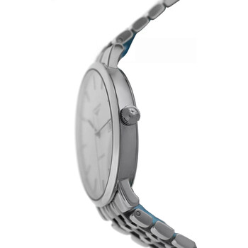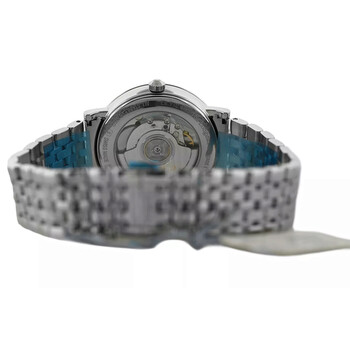 Silver-tone stainless steel case and bracelet. Fixed silver-tone stainless steel bezel. White dial with silver-tone hands and Arabic numeral & index hour markers. Minute markers around the outer rim. Dial Type: Analog. Date display at the 3 o'clock position. Longines Calibre L619 Automatic movement, based upon ETA 2892-A2, containing 21 Jewels, bitting at 28800 vph, and has a power reserve of approximately 42 hours. Scratch resistant sapphire crystal. Pull / push crown. Transparent see through case back. Round case shape, case size: 39 mm. Fold over clasp with a safety release. Water resistant at 30 meters / 100 feet. Functions: date, hour, minute, second. Elegant Collection Series. Luxury watch style. Watch label: Swiss Made. Item Variations: L4.910.4. Pre-owned Longines Elegant Collection Automatic White Dial Men's Watch L4.910.4.12.6.