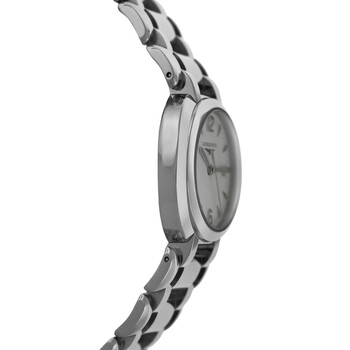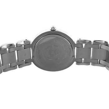 Silver-tone stainless steel case and bracelet. Fixed silver-tone stainless steel bezel. White dial with silver-tone hands and Arabic numeral & index hour markers. Minute markers around the outer rim. Dial Type: Analog. Date display at the 3 o'clock position. Longines Calibre L129 quartz movement. Scratch resistant sapphire crystal. Pull / push crown. Solid case back. Round case shape, case size: 30 mm. Fold over clasp with a safety release. Water resistant at 30 meters / 100 feet. Functions: date, hour, minute, second, battery eol indicator. Prima Luna Series. Luxury watch style. Watch label: Swiss Made. Item Variations: L8.112.4, L8 112 4 16 6, L8-112-4-16-6, L8/112/4/16/6, L81124166. Pre-owned Longines Prima Luna Quartz White Dial Ladies Watch L8.112.4.16.6.