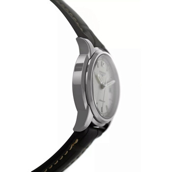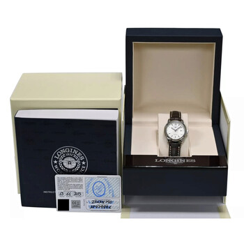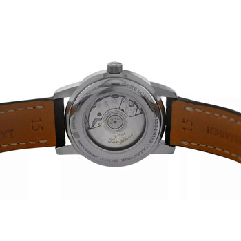 Silver-tone stainless steel case with a leather strap. Fixed silver-tone stainless steel bezel. Brown dial with silver-tone hands and Arabic numeral & index hour markers. Minute markers around the outer rim. Dial Type: Analog. Luminescent hands. Date display at the 3 o'clock position. Longines Calibre L595 Automatic movement, based upon ETA 2000/1, containing 20 Jewels, bitting at 28800 vph, and has a power reserve of approximately 40 hours. Scratch resistant sapphire crystal. Transparent see through case back. Round case shape, case size: 30 mm. Fold over clasp with a safety release. Water resistant at 30 meters / 100 feet. Functions: date, hour, minute, second. Saint-imier Series. Dive watch style. Watch label: Swiss Made. Pre-owned Longines Saint-Imier Automatic Brown Dial Men's Watch L2.563.4.79.0.