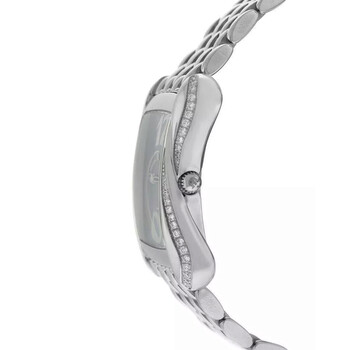 Silver-tone stainless steel case and bracelet. Fixed silver-tone stainless steel bezel. Mother of pearl dial with silver-tone hands and Arabic numeral hour markers. Dial Type: Analog. Quartz movement. Scratch resistant sapphire crystal. Solid case back. Unique case shape, case size: 30 mm. Fold over clasp with a safety release. Water resistant at 30 meters / 100 feet. Functions: hour, minute. Divina Series. Luxury watch style. Pre-owned Maurice Lacroix Divina Quartz Ladies Watch DV5012-SD532-360.