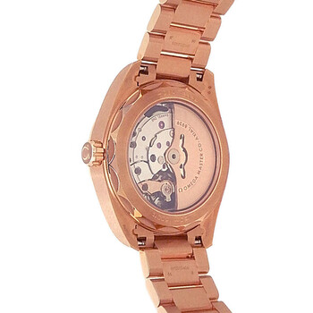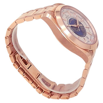 Pre-owned 18kt rose gold case with a brushed & polished 18kt rose gold bracelet. Fixed 18kt rose gold bezel. Silver dial with rose gold-tone hands and index hour markers. World time scale around the outer rim. Dial Type: Analog. Luminescent hands and markers. Date display at the 6 o'clock position. Omega Calibre 8939 Automatic movement, containing 39 Jewels, bitting at 25200 vph, and has a power reserve of approximately 60 hours. Scratch resistant sapphire crystal. Screw down crown. Transparent case back. Round case shape, case size: 43 mm. Push button folding clasp. Water resistant at 150 meters / 500 feet. Functions: world time, date, GMT, second time zone, hour, minute, second, co-axial escapement, chronometer. Aqua Terra Co-axial Series. Luxury watch style. Watch label: Swiss Made. Omega Aqua Terra Co-Axial World Time Automatic Chronometer Silver Dial Watch 220.50.43.22.02.001.
