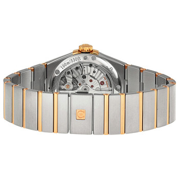 Pre-owned Stainless steel case with a stainless steel bracelet with 18kt rose gold bars. Fixed 18kt rose gold bezel. Silver dial with luminous rose gold dauphine-style hands and index hour markers. Minute markers around the outer rim. Dial Type: Analog. Luminescent hands and markers. Date display at the 3 o'clock position. Omega calibre 8500 automatic movement, containing 39 Jewels, composed of 202 parts, bitting at 25200 vph, and has a power reserve of approximately 60 hours. Scratch resistant anti-reflective sapphire crystal. Pull / push crown. Transparent case back. Round case shape. Case size: 38 mm. Band width: 21.6 mm. Band length: 8.5 inches. Fold over clasp with a push button release. Water resistant at 100 meters / 330 feet. Functions: date, hour, minute, second, co-axial escapement, chronometer. Constellation Series. Luxury watch style. Watch label: Swiss Made. Item Variations: 123 20 38 21 02 001, 123-20-38-21-02-001, 123/20/38/21/02/001, 12320382102001. Omega Constellation Silver Dial Rose Gold and Steel Men's Watch 123.20.38.21.02.001.