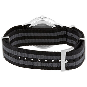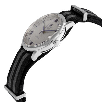Silver-tone stainless steel case with a black and grey nylon strap. Fixed silver-tone stainless steel bezel. Grey dial with blued dauphine-style hands and alternating Roman numeral and dot cabochon hour markers. Minute markers around the outer rim. Dial Type: Analog. Date display at the 3 o'clock position. Omega Calibre 2500 Automatic movement, based upon ETA 2892-A2, containing 27 Jewels, bitting at 25200 vph, and has a power reserve of approximately 48 hours. Scratch resistant sapphire crystal. Pull / push crown. Solid case back. Round case shape, case size: 39.5 mm. Band width: 20 mm. Hidden fold over clasp. Water resistant at 30 meters / 100 feet. Functions: date, hour, minute, second, co-axial escapement, chronometer. De Ville Prestige Series. Luxury watch style. Watch label: Swiss Made. Pre-owned Omega De Ville Prestige Automatic Chronometer Grey Dial Men's Watch 424.10.40.20.06.002.