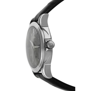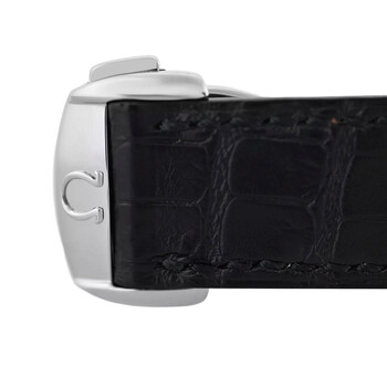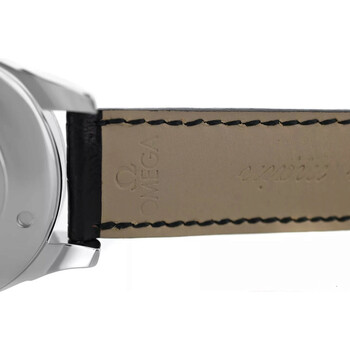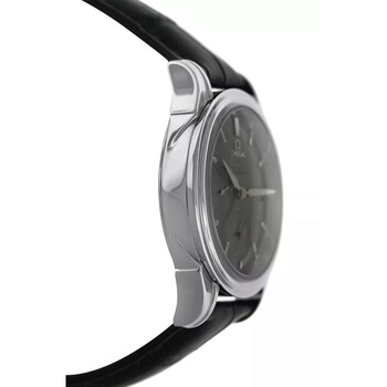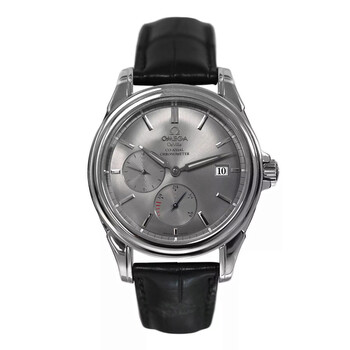 Silver-tone stainless steel case with a black leather strap. Fixed silver-tone stainless steel bezel. Grey dial with silver-tone hands and Arabic numeral & index hour markers. Minute markers around the outer rim. Dial Type: Analog. Luminescent hands and markers. Date display at the 3 o'clock position. Automatic movement. Solid case back. Round case shape, case size: 38 mm. Deployment with push button release clasp. Functions: chronograph, date, hour, minute, second. De Ville Prestige Series. Luxury watch style. Watch label: Swiss Made. Pre-owned Omega De Ville Prestige Chronograph Automatic Grey Dial Men's Watch 4832.41.31.