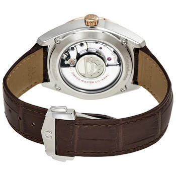 Sedna gold case with a brown leather strap. Fixed 18kt rose gold bezel. Slate grey (pie pan) dial with rose gold-tone hands and index hour markers. Months display. minute markers around the outer rim. Dial Type: Analog. Luminescent hands and markers. Date display at the 6 o'clock position. Omega calibre 8922 automatic movement with a 55-hour power reserve. Scratch resistant sapphire crystal. Transparent case back. Case size: 41 mm. Round case shape. Band length: 7 inches. Tang clasp. Water resistant at 100 meters / 330 feet. Functions: annual calendar, month, date, hour, minute, second, chronometer. Luxury watch style. Watch label: Swiss Made. Omega Globemaster Annual Calendar Automatic Men's Watch 130.23.41.22.06.001.
