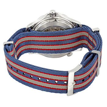 Stainless steel case with a blue, red and grey polyamide nato band. Uni-directional rotating blue and red (pepsi) top ring stainless steel bezel. White dial with dot hour markers. Minute markers around the outer rim. Dial Type: Analog. Luminescent hands and markers. Date display at the 3 o'clock position. Omega Calibre 2507 automatic movement with a 48-hour power reserve. Scratch resistant sapphire crystal. Screw down crown. Transparent case back. Round case shape. Case size: 41 mm. Band width: 20 mm. Tang clasp. Water resistant at 300 meters / 1000 feet. Functions: date, hour, minute, second, co-axial escapement, chronometer. Additional Info: limited edition of 7007 pieces. Dive watch style. Watch label: Swiss Made. Pre-owned Omega James Bond 007 Commanders Automatic Chronometer White Dial Pepsi Bezel Men's Watch 212.32.41.20.04.001.