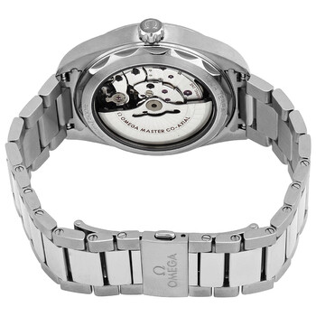 Silver-tone stainless steel case with a silver-tone polished and brushed stainless steel bracelet. Fixed silver-tone stainless steel bezel. Green horizontal (“teak” pattern) dial with luminous silver-tone hands and index hour markers. Minute markers around the outer rim. Dial Type: Analog. Luminescent hands and markers. Date display at the 6 o'clock position. Omega Calibre 8900 Automatic movement, based upon Omega 8500, containing 39 Jewels, bitting at 25200 vph, and has a power reserve of approximately 60 hours. Scratch resistant sapphire crystal. Screw down crown. Transparent case back. Round case shape, case size: 41 mm, case thickness: 13.2 mm. Band width: 20 mm. Fold over clasp with a push button release. Water resistant at 150 metres / 500 feet. Functions: date, hour, minute, second. Seamaster Aqua Terra Series. Luxury watch style. Watch label: Swiss Made. Pre-owned Omega Seamaster Aqua Terra Automatic Men's Watch 220.10.41.21.10.001.