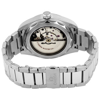 Pre-owned Stainless steel case with a stainless steel bracelet. Fixed stainless steel bezel. Blue dial with luminous silver-tone hands and index hour markers. 24 hour markers. World time cities around the outer rim. Dial Type: Analog. Luminescent hands and markers. Date display at the 6 o'clock position. Omega calibre 8938 Automatic movement, containing 39 Jewels, bitting at 25200 vph, and has a power reserve of approximately 60 hours. Scratch resistant sapphire crystal. Screw down crown. Transparent case back. Round case shape. Case size: 43 mm. Band width: 21 mm. Fold over clasp. Water resistant at 150 meters / 500 feet. Functions: world time, GMT, second time zone, hour, minute, second, co-axial escapement, chronometer, shock resistant. Seamaster Aqua Terra Series. Luxury watch style. Watch label: Swiss Made. Omega Seamaster Aqua Terra Automatic Blue Dial Men's Watch 220.10.43.22.03.001.
