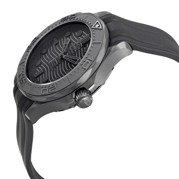Black ceramic case with a black leather strap. Uni-directional rotating black ceramic bezel. Black (wave pattern) dial with black skeleton hands and dot hour markers. Minute markers around the outer rim. Dial Type: Analog. Omega Calibre 8806 Automatic movement, containing 35 Jewels, bitting at 25200 vph, and has a power reserve of approximately 55 hours. Scratch resistant sapphire crystal. Screw down crown. Transparent case back. Round case shape, case size: 43.5 mm. Band width: 21 mm. Tang clasp. Water resistant at 300 meters / 1000 feet. Functions: hour, minute, second, co-axial escapement, chronometer, magnetic resistant. Seamaster Series. Luxury watch style. Watch label: Swiss Made. Pre-owned Omega Seamaster Automatic Chronometer Men's Watch 210.92.44.20.01.003.