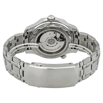 Pre-owned Stainless steel case with a stainless steel bracelet. Uni-directional rotating stainless steel bezel with a black ceramic (count-up elapsed time) ring. Black dial with luminous rhodium-plated skeleton hands and dot hour markers. Minute markers around the outer rim. Dial Type: Analog. Luminescent hands and markers. Date display at the 6 o'clock position. Omega calibre 8800 automatic movement, containing 35 Jewels, bitting at 25200 vph, and has a power reserve of approximately 55 hours. Scratch resistant sapphire crystal. Screw down crown. Transparent case back. Round case shape. Case size: 42 mm. case thickness: 14 mm. Band width: 20 mm. Deployment clasp with a push button release. Water resistant at 300 meters / 1000 feet. Functions: date, hour, minute, second, co-axial escapement, chronometer. Seamaster Series. Dive watch style. Watch label: Swiss Made. Omega Seamaster Automatic Chronometer Black Dial Men's Watch 210.30.42.20.01.001.