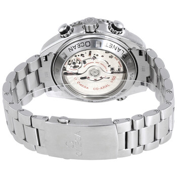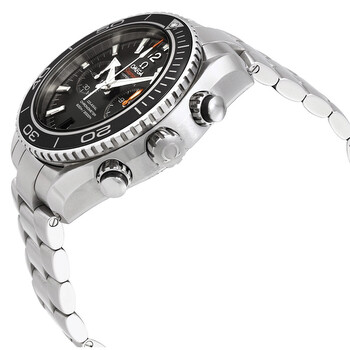 Silver-tone stainless steel case with a silver-tone stainless steel bracelet. Uni-directional rotating coin edge black count-up elapsed time ceramic bezel. Black dial with silver-tone arrow-shaped hands and index hour markers. Arabic numeral appears at the 12 o'clock position. minute markers around the outer rim. Dial Type: Analog. Luminescent hands and markers. Date display at the 6 o'clock position. Chronograph - two sub-dials displaying: 60 second and 12 hours. Omega Calibre 9300 Automatic movement, containing 54 Jewels, composed of 337 parts, bitting at 28800 vph, and has a power reserve of approximately 60 hours. Scratch resistant sapphire crystal. Screw down crown. Skeleton case back. Round case shape, case size: 45.5 mm. Band width: 20 mm. Deployment with push button release clasp. Water resistant at 600 meters / 2000 feet. Functions: chronograph, date, hour, minute, second, chronometer. Seamaster Planet Ocean Series. Dive watch style. Watch label: Swiss Made. Pre-owned Omega Seamaster Planet Ocean Chronograph Automatic Chronometer Men's Watch OM23230465101001.
