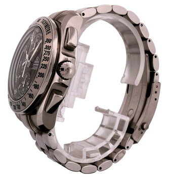 Silver-tone stainless steel case and bracelet. Fixed tachymeter scale silver-tone stainless steel bezel. Black dial with silver-tone hands and index hour markers. Minute markers around the outer rim. Dial Type: Analog. Luminescent hands and markers. Chronograph - three sub-dials displaying: 60 second, 30 minute and 12 hour. Omega Calibre 3600 Automatic movement, based upon ETA 7750, containing 28 Jewels, bitting at 28800 vph, and has a power reserve of approximately 42 hours. Scratch resistant sapphire crystal. Pull / push crown. Solid case back. Round case shape, case size: 42 mm. Band length: 7 inches. Fold over clasp with a safety release. Water resistant at 100 meters / 330 feet. Functions: chronograph, rattrapante, hour, minute, small second, chronometer. Speedmaster Series. Luxury watch style. Watch label: Swiss Made. Pre-owned Omega Speedmaster Chronograph Automatic Chronometer Black Dial Men's Watch 3540.5.