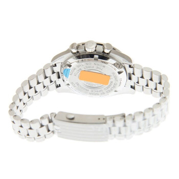 Silver-tone stainless steel case and bracelet. Fixed silver-tone stainless steel with an inlaid black aluminium ring bezel. Black dial with silver-tone hands and index hour markers. Minute markers around the outer rim. Dial Type: Analog. Luminescent hands and markers. Chronograph - three sub-dials displaying: 60 second, 30 minute and 12 hour. Omega Calibre 3861 Automatic movement, based upon Lemania 1873, containing 26 Jewels, bitting at 21600 vph, and has a power reserve of approximately 50 hours. Scratch resistant hesalite crystal crystal. Pull / push crown. Solid case back. Round case shape, case size: 42 mm, case thickness: 13.58 mm. Deployment clasp. Water resistant at 50 meters / 165 feet. Functions: chronograph, hour, minute, second. Speedmaster Series. Dive watch style. Watch label: Swiss Made. Pre-owned Omega Speedmaster Chronograph Hand Wind Black Dial Men's Watch 310.30.42.50.01.001.