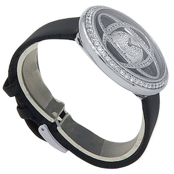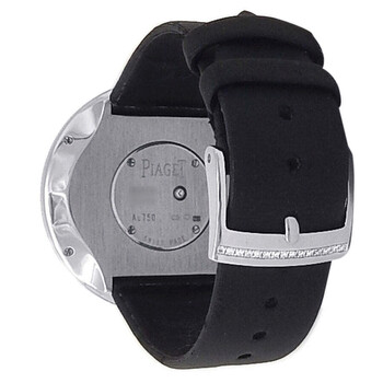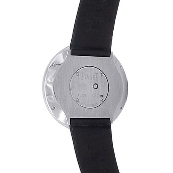 18kt white gold case with a black rubber strap. Fixed bezel with diamond set 18kt white gold. Black dial with black hands. Dial Type: Analog. Quartz movement. Scratch resistant sapphire crystal. Solid case back. Round case shape, case size: 38 mm. Buckle clasp. Functions: hour, minute. Limelight Jazz Party Series. Dress watch style. Watch label: Swiss Made. Pre-owned Piaget Limelight Jazz Party Quartz Diamond Black Dial Ladies Watch G0A35156.