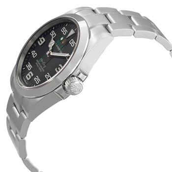 Pre-owned Oystersteel case with a oystersteel bracelet. Fixed oystersteel bezel. Black dial with luminous silver-tone hands and index hour markers. Arabic numeral minute markers (at 5 minute intervals). Minute markers around the outer rim. Dial Type: Analog. Luminescent hands and markers. Rolex calibre 3230 automatic movement, containing 31 Jewels, bitting at 28800 vph, and has a power reserve of approximately 70 hours. Scratch resistant sapphire crystal. Screw down crown. Solid case back. Round case shape. Case size: 40 mm. Fold over oysterlock clasp. Water resistant at 100 meters / 330 feet. Air-king Series. Luxury watch style. Watch label: Swiss Made. Rolex Air-King Automatic Black Dial Men's Oyster Watch M126900-0001.