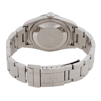 Silver-tone stainless steel case with a silver-tone stainless steel oyster bracelet. Fixed domed silver-tone stainless steel bezel. Black dial with silver-tone Mercedes-logo, sword, and Breguet-style shape hands and stick with Arabic numerals at 3, 6, and 9 o'clock positions hour markers. Minute markers around the outer rim. Dial Type: Analog. Luminescent hands and markers. Rolex Calibre 3130 Automatic movement, containing 31 Jewels, bitting at 28800 vph, and has a power reserve of approximately 48 hours. Scratch resistant sapphire crystal. Screw down crown. Solid case back. Round case shape, case size: 36 mm, case thickness: 12 mm. Band width: 20 mm. Fold over clasp. Water resistant at 100 meters / 330 feet. Functions: hours, minutes, seconds. Explorer Series. Luxury watch style. Watch label: Swiss Made. Pre-owned Rolex Explorer Automatic Black Dial Men's Watch 114270BKASO.