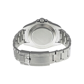Silver-tone stainless steel case with a silver-tone stainless steel rolex oyster bracelet. Fixed - 24 hour engraved silver-tone stainless steel bezel. Black dial with luminous silver-tone Mercedes-logo, sword, and Breguet-style shape hands and dot hour markers. Minute markers around the outer rim. Dial Type: Analog. Luminescent hands and markers. Date display at the 3 o'clock position. Rolex Calibre 3187 Automatic movement, containing 25 Jewels, bitting at 28800 vph, and has a power reserve of approximately 50 hours. Scratch resistant sapphire crystal. Screw down crown. Solid case back. Round case shape, case size: 42 mm. Band width: 20 mm, band length: 7 1/4 inches. Oysterlock clasp. Water resistant at 100 meters / 330 feet. Functions: GMT, second time zone, date, hour, minute, second, chronometer. Explorer II Series. Luxury watch style. Watch label: Swiss Made. Pre-owned Rolex Explorer II Automatic Chronometer Black Dial Men's Watch 216570BKSO.