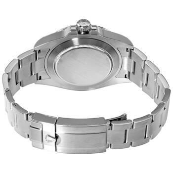 Silver-tone stainless steel case and bracelet. Fixed silver-tone stainless steel showing 24 hour markers bezel. Black dial with luminous silver-tone hands and dot hour markers. Minute markers around the outer rim. Dial Type: Analog. Luminescent hands and markers. Date display at the 3 o'clock position. Rolex Calibre 3285 Automatic movement, based upon Rolex 3255, containing 31 Jewels, bitting at 28800 vph, and has a power reserve of approximately 70 hours. Scratch resistant sapphire crystal. Screw down crown. Solid case back. Round case shape, case size: 42 mm. Band width: 21 mm, band length: 7 inches. Oysterlock clasp. Water resistant at 100 meters / 330 feet. Functions: date, GMT, second time zone, hour, minute, second, chronometer. Explorer II Series. Luxury watch style. Watch label: Swiss Made. Pre-owned Rolex Explorer II Automatic Chronometer Black Dial Men's Watch 226570BKSO.