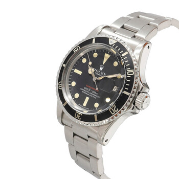 Silver-tone stainless steel case with a silver-tone stainless steel oyster bracelet. Bi-directional rotating black bezel. Black dial with silver-tone hands and index hour markers. Minute markers around the outer rim. Dial Type: Analog. Luminescent hands and markers. Date display at the 3 o'clock position. Automatic movement. Scratch resistant acrylic crystal. Solid case back. Round case shape, case size: 40 mm, case thickness: 14.60 mm. Band width: 20 mm, band length: 7.25 inches. Fold over clasp with a safety release. Water resistant at 200 meters / 660 feet. Functions: date, hour, minute, second. Oyster Perpetual Series. Luxury watch style. Watch label: Swiss Made. Pre-owned Rolex Oyster Perpetual Automatic Black Dial Men's Watch 1680 BKSO.