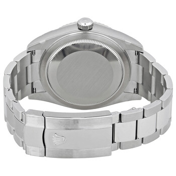 Pre-owned Stainless steel case with a stainless steel Rolex oyster bracelet with 18kt white gold center links. Fluted ring command 18kt white gold bezel. Black dial with luminous white gold hands and index hour markers. Minute markers around the outer rim. Dial Type: Analog. Luminescent hands and markers. Date display at the 3 o'clock position. 24 hours sub-dial. Rolex calibre 9001 automatic movement with a 72-hour power reserve. Scratch resistant sapphire crystal. Screw down crown. Solid case back. Round case shape. Case size: 42 mm. Oysterlock clasp. Water resistant at 100 meters / 330 feet. Functions: annual calendar, month, date, GMT, second time zone, hour, minute, second, chronometer. Luxury watch style. Watch label: Swiss Made. Rolex Sky-Dweller Black Dial Automatic Men's Oyster Watch 326934BKSO.