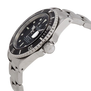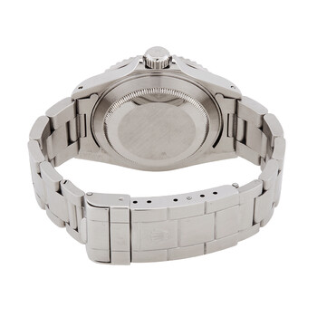 Silver-tone stainless steel case with a silver-tone stainless steel rolex oyster bracelet. Uni-directional rotating black aluminum bezel. Black dial with silver-tone Mercedes-logo, sword, and Breguet-style shape hands and luminous dots hour markers. Minute markers around the outer rim. Dial Type: Analog. Luminescent hands and dial markers. Date display at the 3 o'clock position. Rolex Calibre 3135 Automatic movement, containing 31 Jewels, bitting at 28800 vph, and has a power reserve of approximately 48 hours. Scratch resistant sapphire crystal. Screw down crown. Solid case back. Round case shape, case size: 40 mm. Oysterlock clasp. Water resistant at 300 meters / 1000 feet. Functions: date, hour, minute, second, chronometer. Submariner Series. Sport watch style. Watch label: Swiss Made. Pre-Owned Rolex Submariner Black Dial Stainless Steel Aluminum Bezel Rolex Oyster Automatic Men's Watch 16610.
