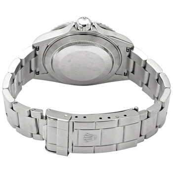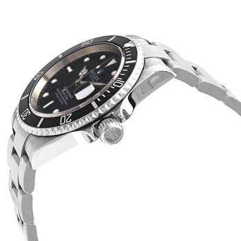 Silver-tone stainless steel case with a silver-tone stainless steel rolex oyster bracelet. Uni-directional rotating black stainless steel bezel. Black dial with silver-tone Mercedes-logo, sword, and Breguet-style shape hands and luminous dots hour markers. Minute markers around the outer rim. Dial Type: Analog. Luminescent hands and dial markers. Date display at the 3 o'clock position. Rolex Calibre 3135 Automatic movement, containing 31 Jewels, bitting at 28800 vph, and has a power reserve of approximately 48 hours. Scratch resistant sapphire crystal. Screw down crown. Solid case back. Round case shape, case size: 40 mm, case thickness: 13 mm. Band width: 20 mm, band length: 7 1/4 inches. Oysterlock clasp. Water resistant at 300 meters / 1000 feet. Functions: date, hour, minute, second, chronometer. Submariner Series. Sport watch style. Watch label: Swiss Made. Pre-Owned Rolex Submariner Black Dial Stainless Steel Rolex Oyster Automatic Men's Watch 16610BKSO.