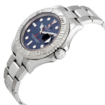 Rolesium (combination steel and platinum) case with a silver-tone stainless steel rolex oyster bracelet. Bi-directional rotating time-lapse grey platinum bezel. Blue dial with silver-tone Mercedes-logo, sword, and Breguet-style shape hands and dot hour markers. Minute markers around the outer rim. Dial Type: Analog. Luminescent hands and markers. Date display at the 3 o'clock position. Rolex Calibre 3135 automatic movement with a 50-hour power reserve. Scratch resistant sapphire crystal. Screw down crown. Solid case back. Round case shape, case size: 40 mm, case thickness: 13 mm. Band width: 18 mm, band length: 8 inches. Oysterlock clasp. Water resistant at 100 meters / 330 feet. Functions: date, hour, minute, second, chronometer. Luxury watch style. Watch label: Swiss Made. Pre-owned Rolex Yacht-Master 40 Automatic Blue Dial Stainless Steel Oyster Bracelet Men's Watch 116622 BLSO.