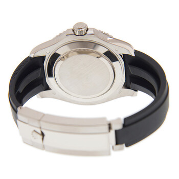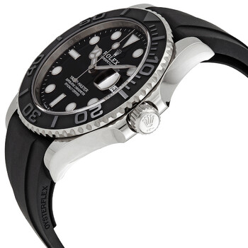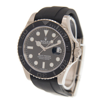 18kt white gold case with a black oysterflex band. Bi-directional rotating 18kt white gold with black cerachrom insert bezel. Black dial with luminous silver-tone Mercedes-logo, sword, and Breguet-style shape hands and dot hour markers. Minute markers around the outer rim. Dial Type: Analog. Luminescent hands and markers. Date display at the 3 o'clock position. Rolex Calibre 3235 Automatic movement, based upon Rolex 3035, containing 31 Jewels, bitting at 28800 vph, and has a power reserve of approximately 70 hours. Scratch resistant sapphire crystal. Screw down crown. Solid case back. Round case shape, case size: 42 mm. Oysterlock clasp. Water resistant at 100 meters / 330 feet. Functions: date, hour, minute, second. Yacht-master Series. Luxury watch style. Watch label: Swiss Made. Pre-owned Rolex Yacht-Master 42 mm 18kt White Gold Men's Watch 226659-0002.