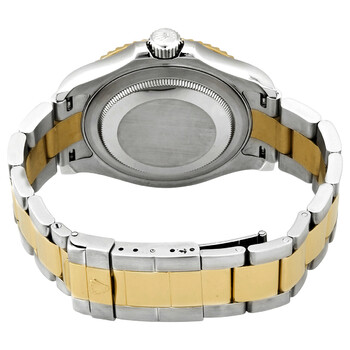 Silver-tone stainless steel case with a two-tone (silver-tone and yellow gold-tone) 18kt yellow gold and stainless steel oyster bracelet. Bi-directional rotating time-lapse 18kt yellow gold bezel. White dial with gold-tone Mercedes-logo, sword, and Breguet-style shape hands and luminous dots hour markers. Minute markers around the outer rim. Dial Type: Analog. Luminescent hands and markers. Date display at the 3 o'clock position. Rolex Calibre 3135 Automatic movement, containing 31 Jewels, bitting at 28800 vph, and has a power reserve of approximately 48 hours. Scratch resistant sapphire crystal. Screw down crown. Solid case back. Round case shape, case size: 40 mm. Band length: 7 1/4 inches. Water resistant at 100 meters / 330 feet. Functions: date, hour, minute, second, chronometer. Yacht-master Series. Luxury watch style. Watch label: Swiss Made. Pre-owned Rolex Yachtmaster White Dial Two-Tone Men's Watch 16623WSO.