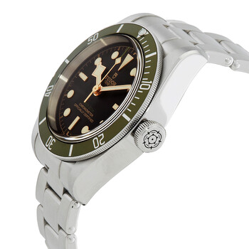 Silver-tone stainless steel case and bracelet. Green stainless steel bezel. Black dial with gold-tone hands and dot hour markers. Minute markers around the outer rim. Dial Type: Analog. Luminescent hands and markers. Automatic movement. Scratch resistant sapphire crystal. Solid case back. Round case shape, case size: 41 mm. Band length: 7 1/2 inches. Fold over clasp with a safety release. Water resistant at 200 meters / 660 feet. Functions: hour, minute, second. Luxury watch style. Watch label: Swiss Made. Pre-owned Tudor Automatic Black Dial Watch 79230G-0001.