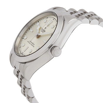Silver-tone stainless steel case and bracelet. Fixed silver-tone stainless steel bezel. White dial with gold-tone hands and index hour markers. Minute markers around the outer rim. Dial Type: Analog. Luminescent hands and markers. Tudor Calibre MT5601 Automatic movement, based upon Tudor MT5612, containing 26 Jewels, bitting at 28800 vph, and has a power reserve of approximately 70 hours. Scratch resistant sapphire crystal. Screw down crown. Round case shape, case size: 41 mm. Band length: 7 inches. Fold over clasp with a safety release. Water resistant at 100 meters / 330 feet. Functions: hour, minute, second, chronometer. Black Bay 41 Series. Luxury watch style. Watch label: Swiss Made. Pre-owned Tudor Black Bay 41 Automatic Chronometer Men's Watch M79680-0001.