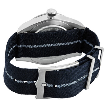 Silver-tone stainless steel case with a blue fabric strap. Uni-directional rotating silver-tone stainless steel with a blue (anodised) aluminium ring bezel. Blue dial with silver-tone hands and dot hour markers. Minute markers around the outer rim. Dial Type: Analog. Luminescent hands and markers. Tudor Calibre MT5402 Automatic movement, containing 27 Jewels, bitting at 28800 vph, and has a power reserve of approximately 70 hours. Scratch resistant sapphire crystal. Screw down crown. Solid case back. Round case shape, case size: 39 mm, case thickness: 11.9 mm. Band width: 20 mm. Tang clasp. Water resistant at 200 meters / 660 feet. Functions: hour, minute, second. Black Bay Fifty-eight Series. Luxury watch style. Watch label: Swiss Made. Item Variations: 79030B-0003. Pre-owned Tudor Black Bay Fifty-Eight Automatic Blue Dial Men's Watch M79030B-0003.