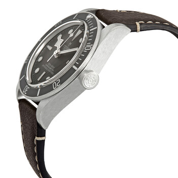925 silver case with a brown leather strap. Uni-directional rotating 925 silver bezel with an inlaid taupe aluminium ring. Grey dial with luminous silver-tone hands and dot hour markers. Minute markers around the outer rim. Dial Type: Analog. Luminescent hands and markers. Tudor calibre MT5400 automatic movement, containing 27 Jewels, bitting at 28800 vph, and has a power reserve of approximately 70 hours. Scratch resistant sapphire crystal. Screw down crown. Transparent case back. Round case shape. Case size: 39 mm. Tang clasp. Water resistant at 200 meters / 660 feet. Functions: hour, minute, second. Black Bay Series. Luxury watch style. Watch label: Swiss Made. Tudor Black Bay Fifty-Eight Automatic Grey Dial Men's Watch M79010SG-0001.