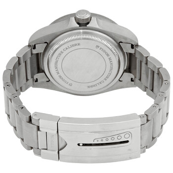 Grey titanium case and bracelet. Uni-directional rotating grey titanium with a black ceramic inlay bezel. Black dial with luminous beige snowflake hands and index hour markers. Minute markers around the outer rim. Dial Type: Analog. Luminescent hands and markers. Date display at the 3 o'clock position. Tudor Calibre MT5612 Automatic movement, containing 26 Jewels, bitting at 28800 vph, and has a power reserve of approximately 70 hours. Scratch resistant sapphire crystal. Screw down crown. Solid case back. Round case shape, case size: 42 mm. Band width: 22 mm. Deployment clasp. Water resistant at 500 meters / 1650 feet. Functions: date, hour, minute, second, chronometer. Pelagos Lhd Series. Luxury watch style. Watch label: Swiss Made. Pre-owned Tudor Pelagos LHD Automatic Chronometer Black Dial Men's Watch 25610TNL.