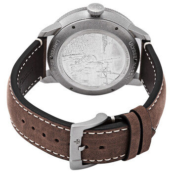 Pre-owned Silver-tone stainless steel case with a brown (calfskin) leather strap. Fixed coin edge silver-tone coin edge stainless steel bezel. Eggshell dial with black spade-shape hands and Arabic numeral hour markers. Minute markers around the outer rim. Dial Type: Analog. One - small second subdial. Ulysse Nardin Calibre UN-118 Automatic movement, based upon Ulysse Nardin UN-66, containing 50 Jewels, bitting at 28800 vph, and has a power reserve of approximately 60 hours. Scratch resistant sapphire crystal. Solid case back. Round case shape, case size: 44 mm. Band width: 22 mm. Folding buckle clasp. Water resistant at 50 meters / 165 feet. Functions: hour, minute, small second. Additional Info: limited edition of 300 pieces. Marine Torpilleur Series. Luxury watch style. Watch label: Swiss Made. Ulysse Nardin Marine Torpilleur Automatic Men's Watch 1183-320LE/60.