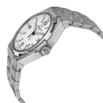 Pre-owned Silver-tone stainless steel case with a silver-tone stainless steel bracelet. Fixed silver-tone stainless steel bezel. Silver dial with luminous hands and index hour markers. Arabic numerals mark the 3, 6, 9 and 12 o'clock positions. minute markers around the outer rim. Dial Type: Analog. Luminescent hands and markers. Date display between 4 and 5 o'clock position. Vacheron Constantin Calibre 1126 Automatic movement, containing 36 Jewels, bitting at 28800 vph, and has a power reserve of approximately 40 hours. Scratch resistant sapphire crystal. Solid case back. Round case shape, case size: 42.5 mm, case thickness: 9.7 mm. Fold over with push button release clasp. Water resistant at 150 meters / 500 feet. Functions: date, hour, minute, second. Overseas Series. Luxury watch style. Watch label: Swiss Made. Item Variations: 47040B01A-9093 , 47040/B01A-9093 , X47A6952. Vacheron Constantin Overseas Automatic Men's Watch 47040B01A-9093.