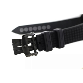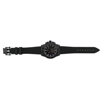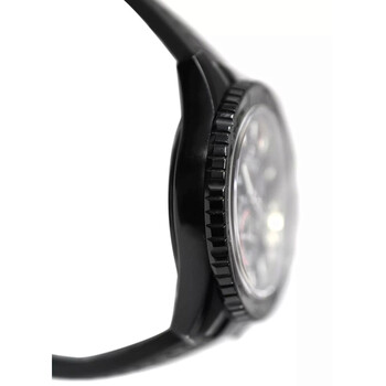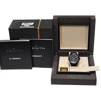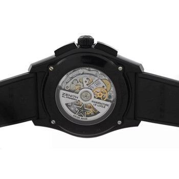 Black stainless steel case with a black rubber strap. Uni-directional rotating black stainless steel bezel. Black dial with silver-tone hands and Arabic numeral & index hour markers. Minute markers around the outer rim. Dial Type: Analog. Luminescent hands and markers. Date display at the 6 o'clock position. Chronograph - three sub-dials displaying: 60 second, 30 minute and 12 hour. Zenith Calibre El Primero 405B Automatic movement, based upon Zenith El Primero 400, containing 31 Jewels, composed of 331 parts, bitting at 36000 vph, and has a power reserve of approximately 50 hours. Scratch resistant sapphire crystal. Transparent see through case back. Round case shape, case size: 45 mm. Band length: 8.75 inches. Deployment with push button release clasp. Water resistant at 100 meters / 330 feet. Functions: chronograph, column wheel, flyback, date, hour, minute, small second. El Primero Stratos Flyback Series. Luxury watch style. Watch label: Swiss Made. Item Variations: 24 2062 405/27 C707, 24-2062-405/27-C707, 24/2062/405/27/C707, 242062405/27C707. Pre-owned Zenith El Primero Stratos Flyback Chronograph Automatic Black Dial Men's Watch 24.2062.405.
