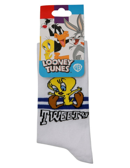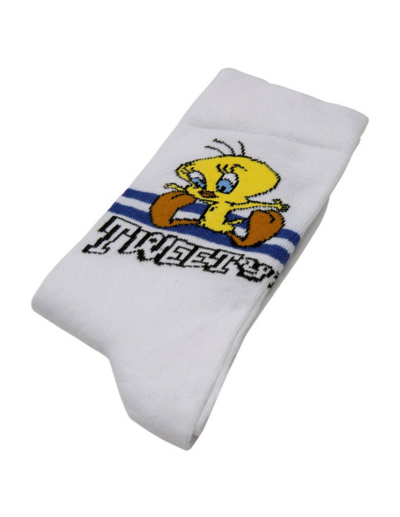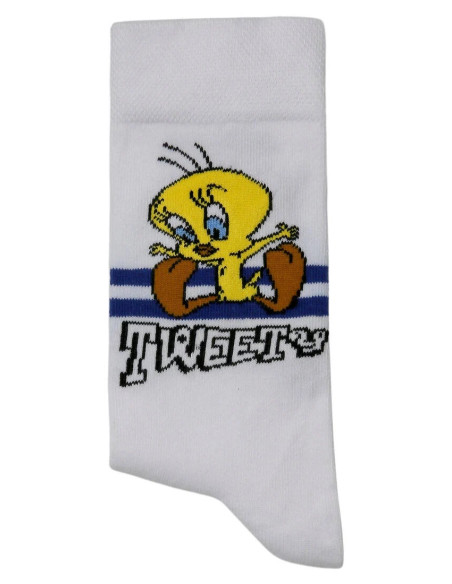ქალის წინდა Dogo - Unisex Vegan White Socks - Warner Bros Tweety Stripes Design