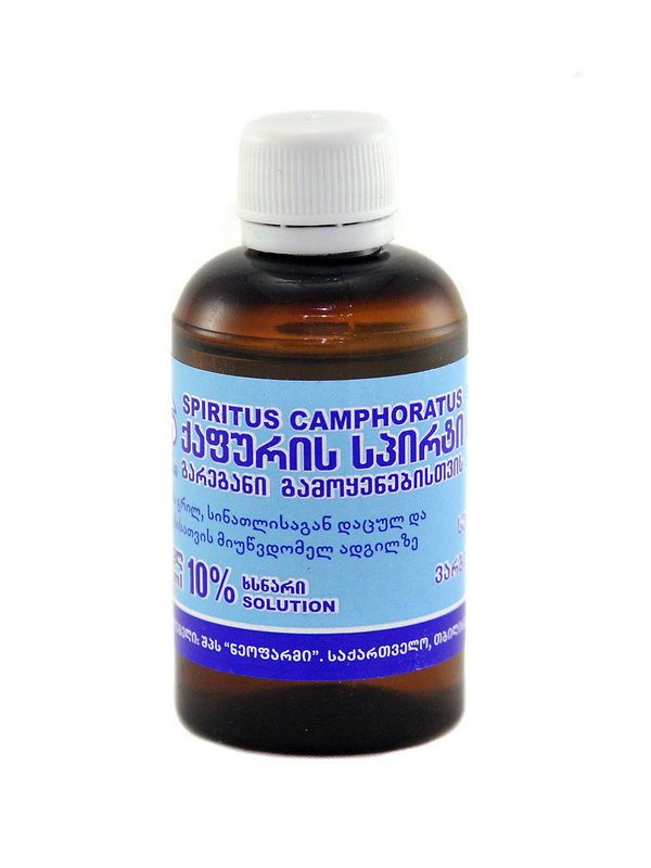 ქაფური - 2გ, ეთილის სპირტი 70% - 100მლ-მდე.