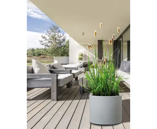 Scheurich 130/30 Riva Stone Grey არის თანამედროვე დიზაინისა და მაღალი ფუნქციონალის მქონე პლასტმასის ქოთანი, რომელიც გამოირჩევა ბუნებრივი ქვის ეფექტის მქრქალი ზედაპირით. მისი ელეგანტური, მშვიდი ფერი და მრგვალი ფორმა ჰარმონიულად ერწყმის როგორც ინტერიერის, ისე გარე სივრცის დიზაინს, რაც მას უნივერსალურ და პრაქტიკულ არჩევანად აქცევს ყველა ტიპის მცენარისთვის. მისი ძლიერი და სტაბილური სტრუქტურა ქმნის კომფორტულ გარემოს მცენარისთვის, ხოლო თანამედროვე მქრქალი ტექსტურა თქვენს სივრცეს აძლევს დახვეწილ და მინიმალისტურ ვიზუალს. ქოთანი იდეალურია როგორც სახლში, ოფისში, აივანზე და ტერასაზე, ასევე გარე ბაღის დიზაინში.