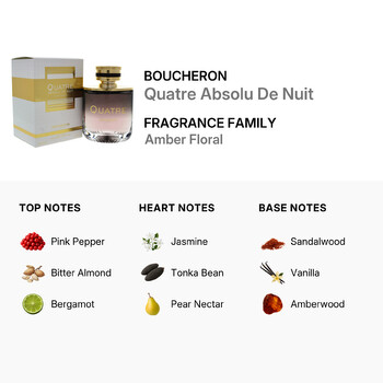 Whether you're heading to a business meeting, a casual outing, or a romantic dinner, this fragrance is versatile enough to complement any occasion. Experience the allure and charm of Quatre Absolu De Nuit by Boucheron, a fragrance that truly embodies the spirit of the modern woman.